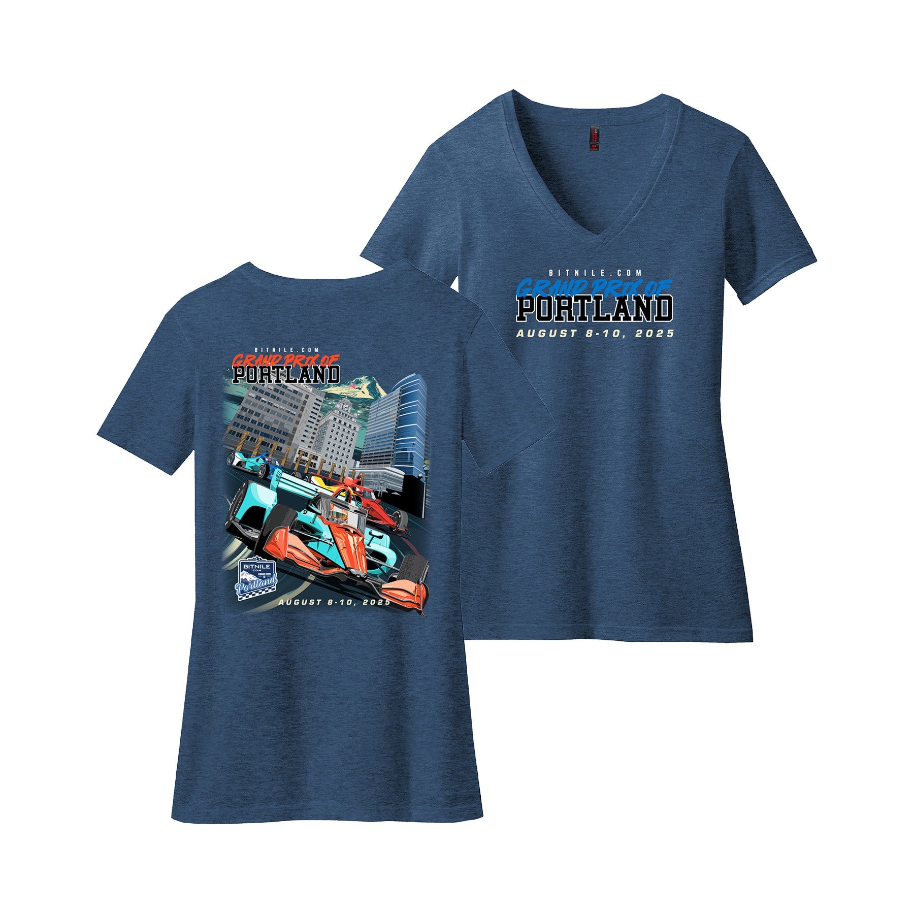 Stay comfortable and stylish at the 2025 Grand Prix of Portland with this official ladies tee. Made from a soft 50/50 cotton-poly blend, it features a flattering v-neck design and a deep royal color that stands out. Perfect for race day at Portland International Raceway or everyday wear, this tee lets you show your passion for racing with authentic event merchandise.