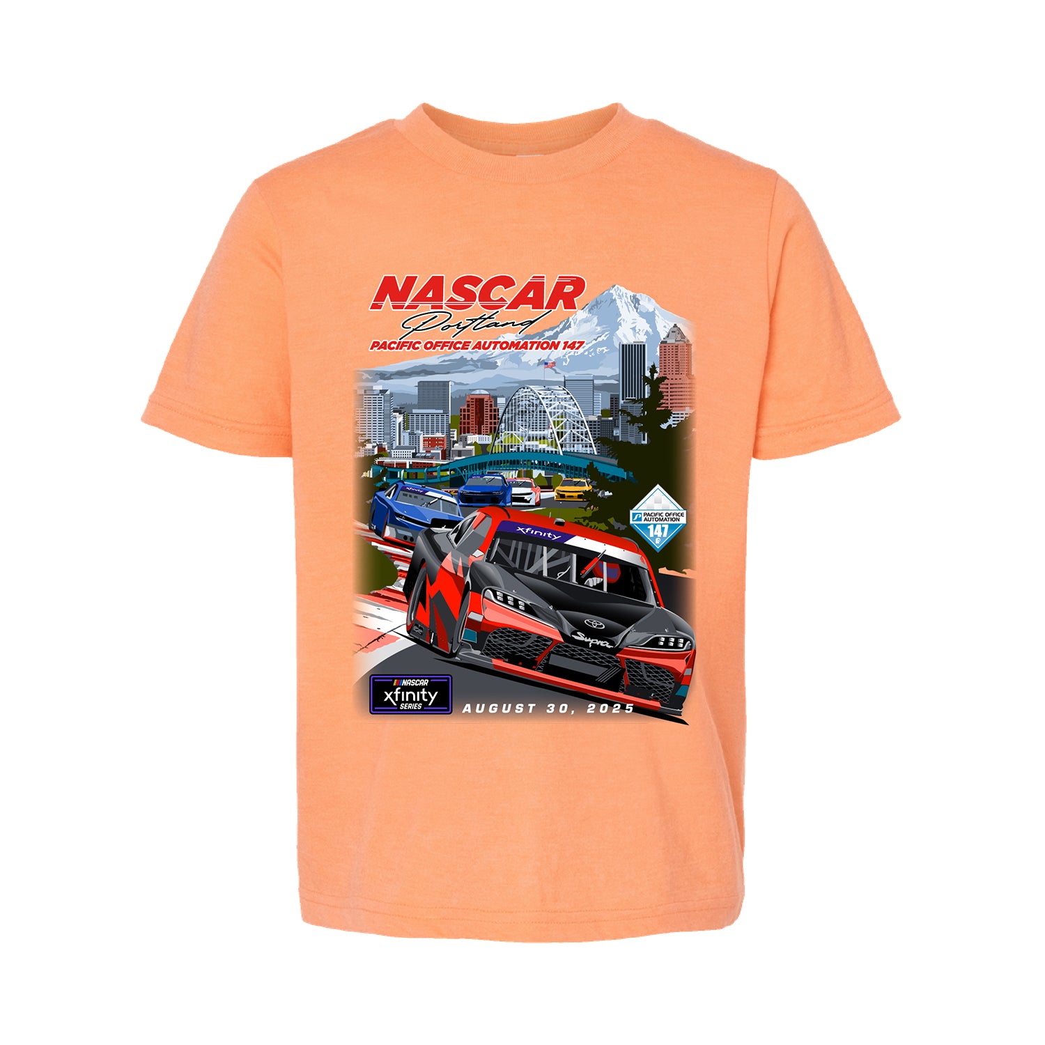 Celebrate race day in style with the 2025 NASCAR Portland Kids Tee. Made from a soft cotton/poly blend, this official kids' shirt offers comfort and durability for young fans. Featuring vibrant orange color and authentic NASCAR Xfinity Cup branding, it’s perfect for showing support at Portland International Raceway or anywhere the race excitement goes. Keep your little one cool and spirited with this must-have race day tee.